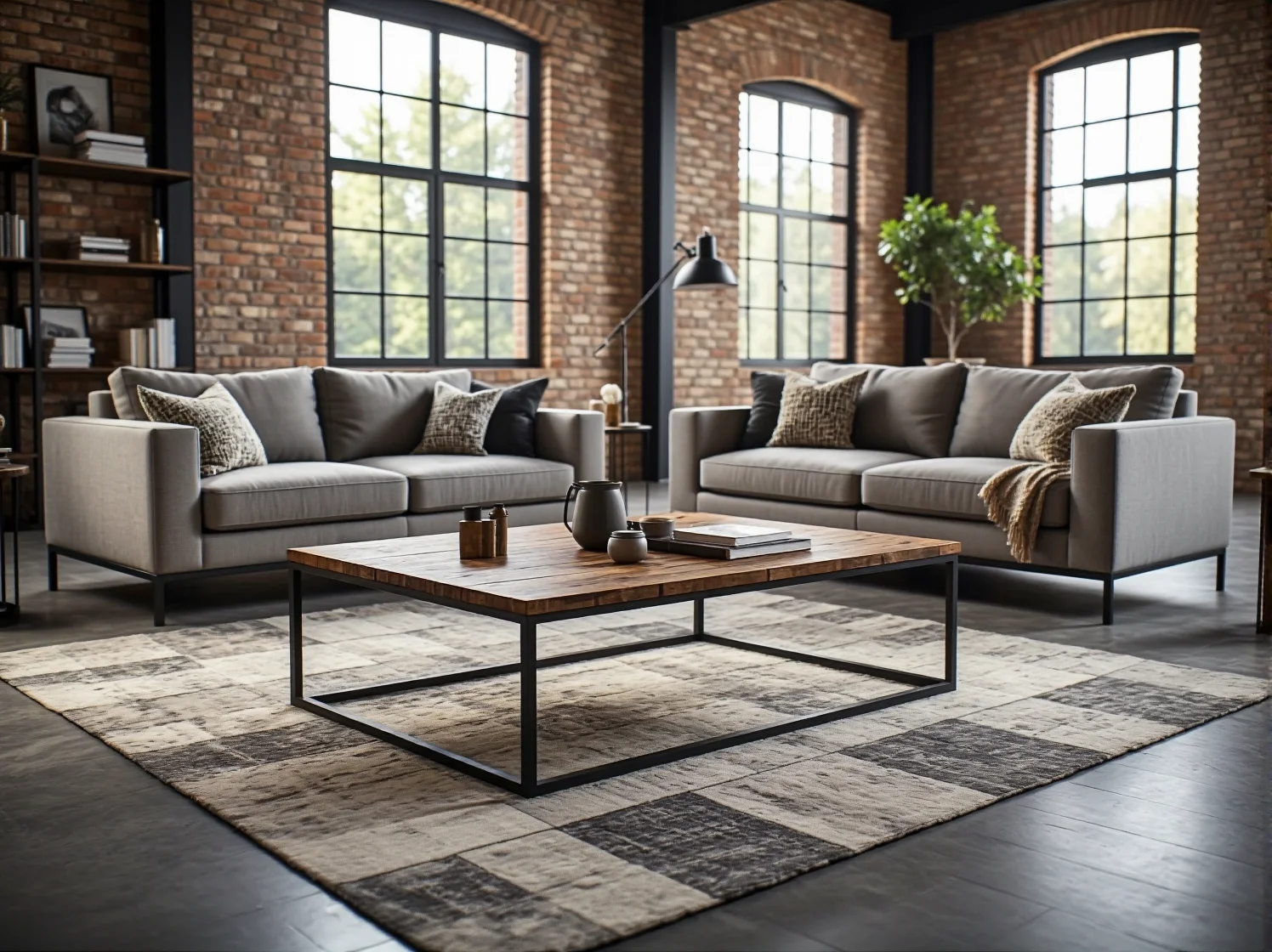 - Forma: Proste, geometryczne i często masywne kształty. Konstrukcje są często celowo wyeksponowane – widoczne spawy, śruby czy nity są elementem dekoracyjnym, a nie czymś, co należy ukryć.